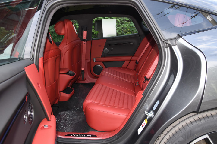 定位中型轿车,阿维塔06的长宽高分别是4855*1960*1450毫米,轴距2940毫米,内部空间宽敞,身高180厘米乘员坐着不挤,后排能坐3名成年人,后备厢空间还挺大,常规容积416升,后排座椅放倒之后能扩展到1266升,露营、滑雪等装备都能塞得下。